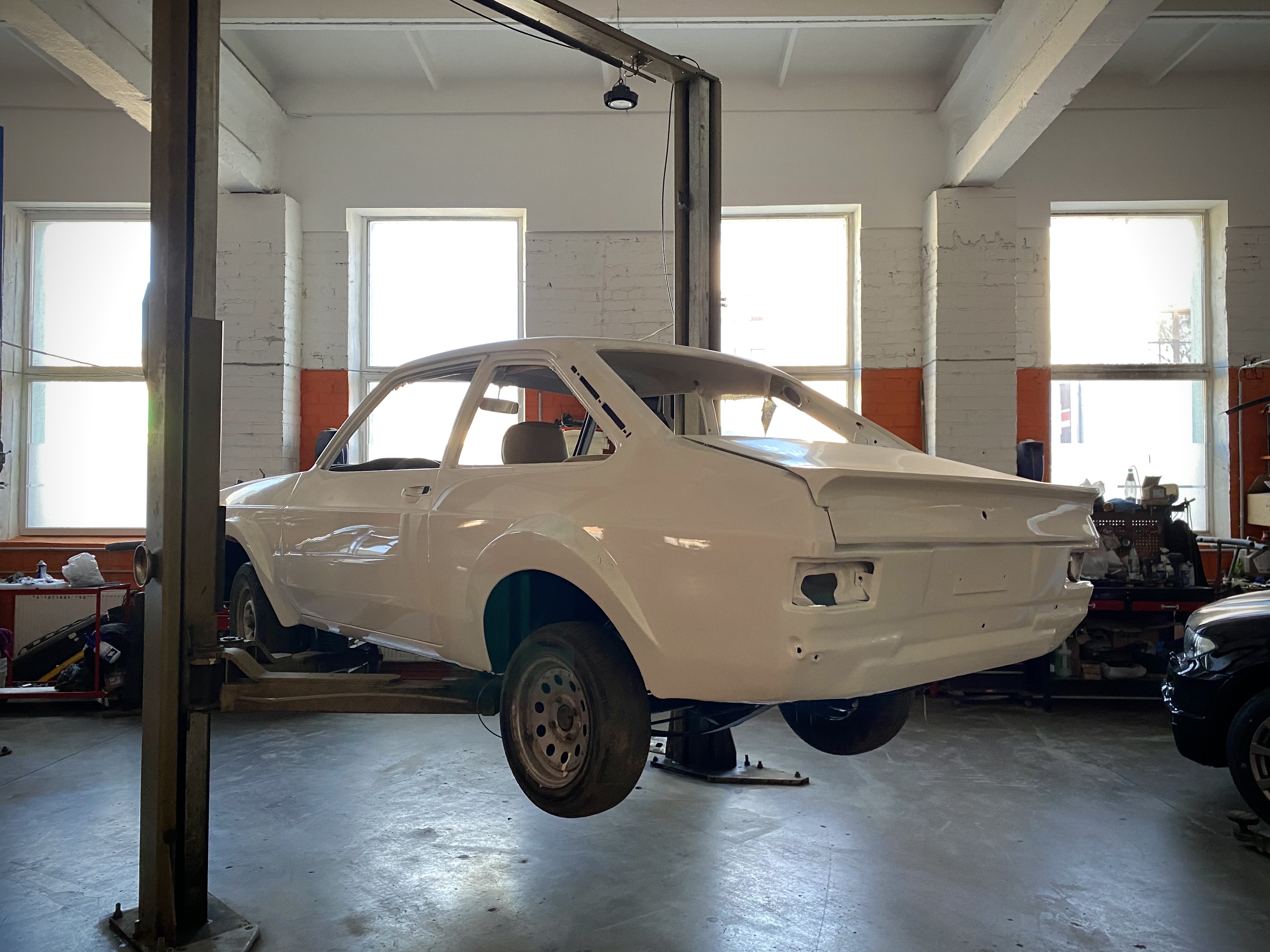 1. Bundža pati par sevi bija diezgan ok stāvoklī, svaigi krāsota, bet kvalitāte bija diezgan bēdīga. Es pirku jaunu aizmugurējo vāku, vēlāk ari gumijas ford spoileri, tad grīdā tika metinātas plāksnes jaunas (pēc oem ford) aizmugurē sēdošiem pie kājām. Tā kā jau komplektā man nāca līdzi sierras Type-9 kārba, kas ir lielāka kā oriģinālā 4robu uz to 1.1L motoru, tad jau laicīgi sūtiju lielāku kārbas tuneli, kas galu galā izrādijās lieks pasākums, jo šī kārba būtu tā kā derējusi vietā. Bet to nomainija, kas radija nelielu problēmu ar grīdas paklāju, kuru sūtiju jaunu no UK, bet tas bija priekš stock tuneļa. Bet tur ar pastiķēšanu utt tika galā, ka defektu tā acīmredzami neredz.